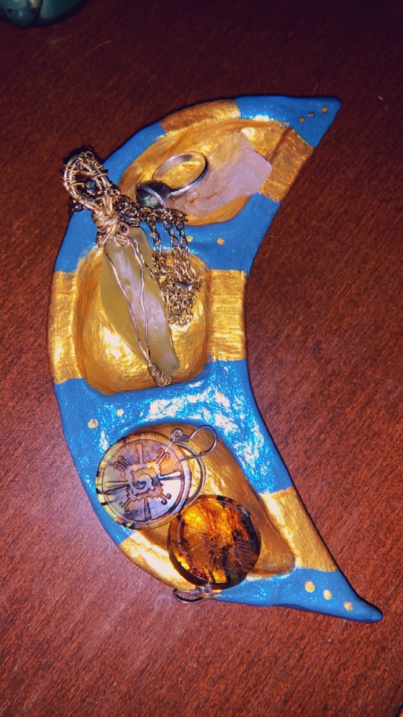… the one I dreamt about, came out exactly how I envisioned it. This piece transports me back to prehistoric Egypt and feels like a piece that connects me back to a lifetime as the Egyptian Goddess Wadjet or the Egyptian Queen Cleopatra. I love the roughness of it and how it looks with its imperfections. It is very rustic and raw and it makes me feel like I’ve had if for ages.